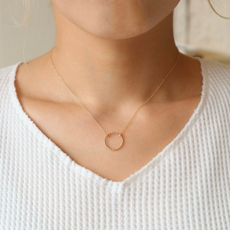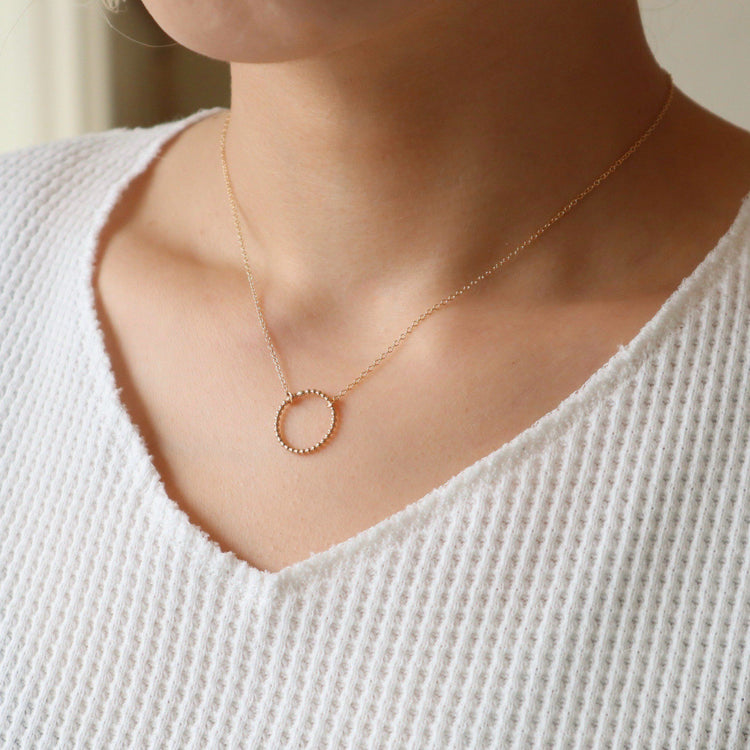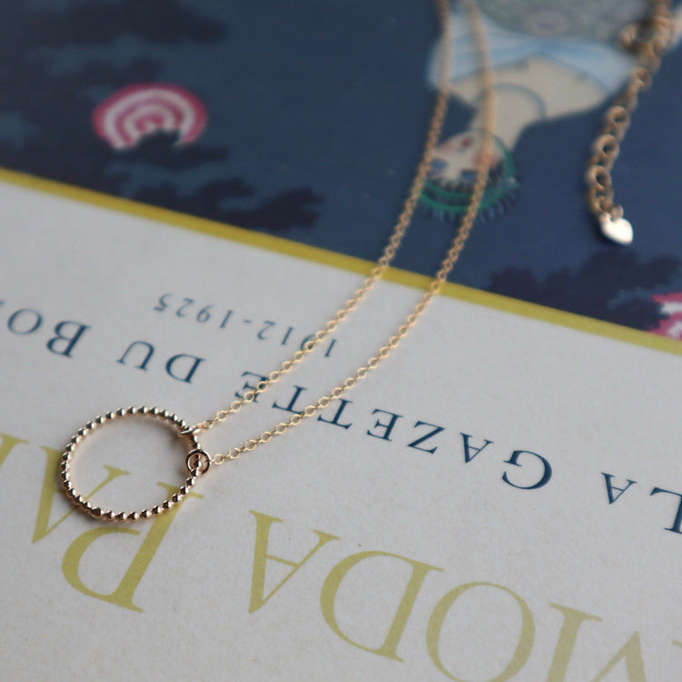 The slenderness and delicate shine of the dots give the necklace a sense of presence, despite its simplicity.