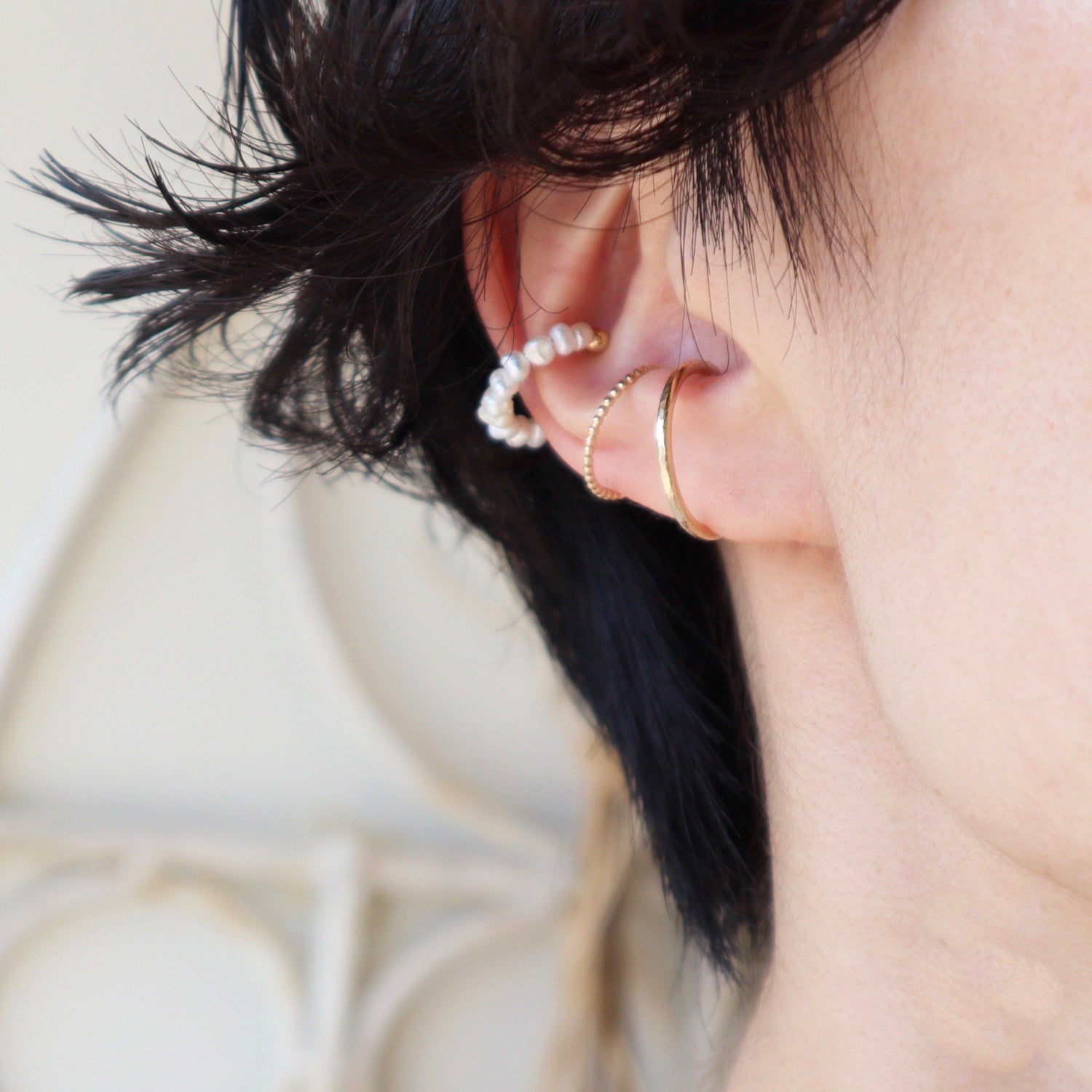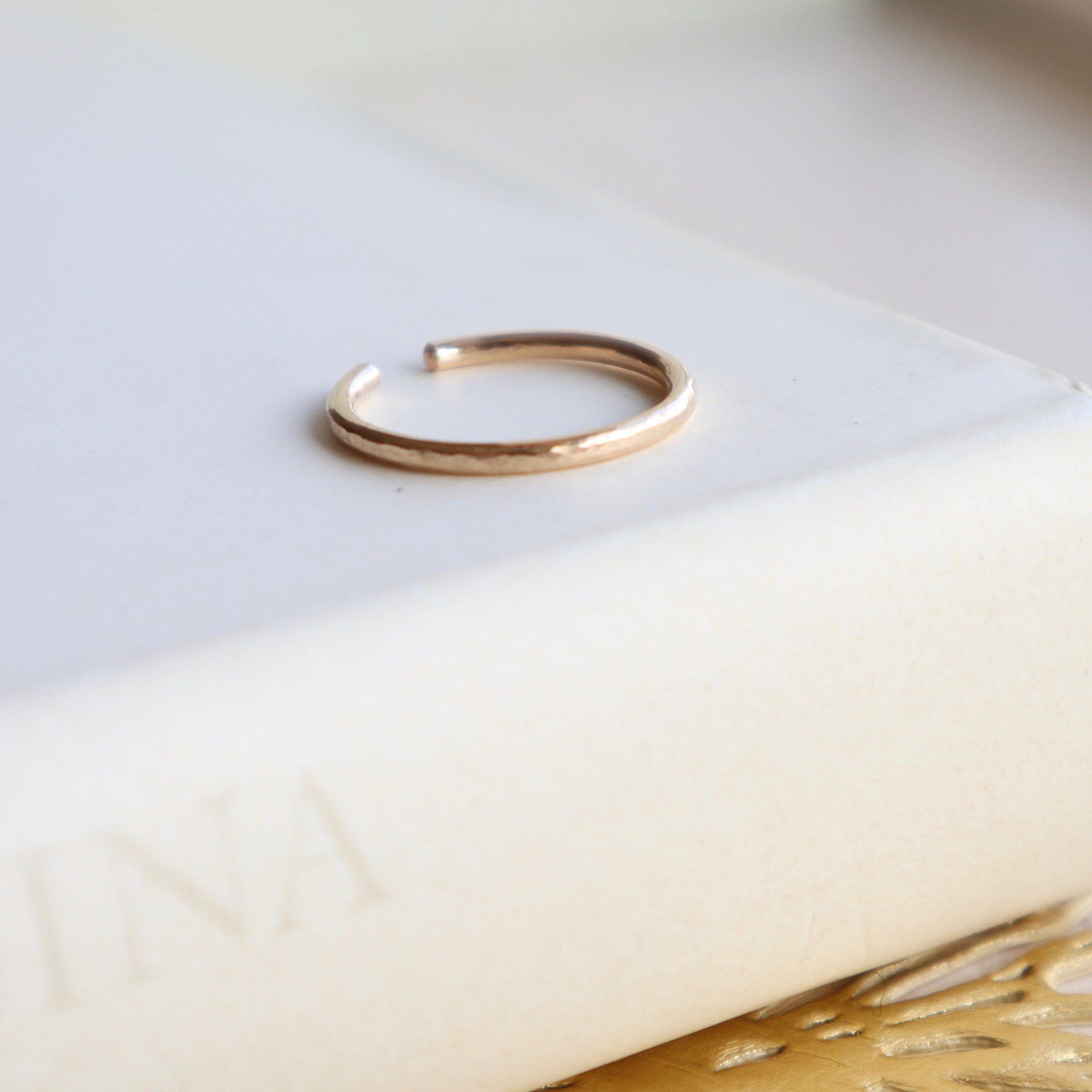 14KGF ear cuff with hammered texture on the surface