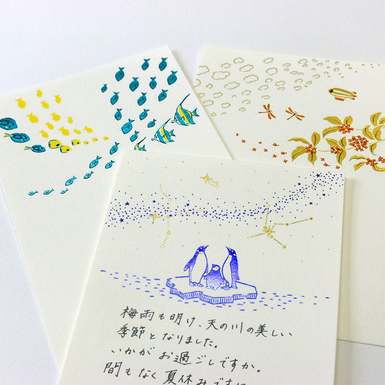 This is a series of postcards with foil-stamped scenes of plants and animals that change from season to season. How about these postcards for seasonal greetings?