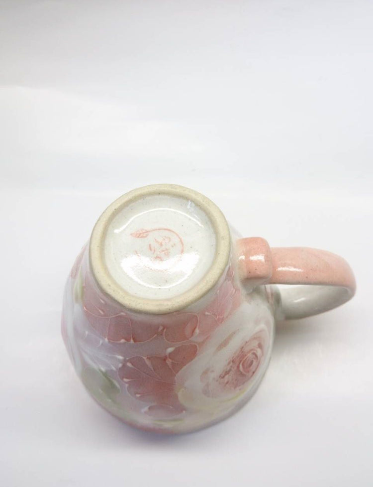 Studio Yuzuriha Very beautiful mug with deformed white roses, glazed rose 27583