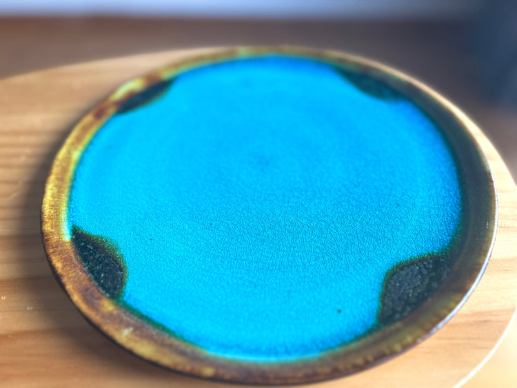 Lightweight with a size that is easy for women to use on the dining table in Okinawan blue, which is an image of the crystal clear sea of Okinawa.