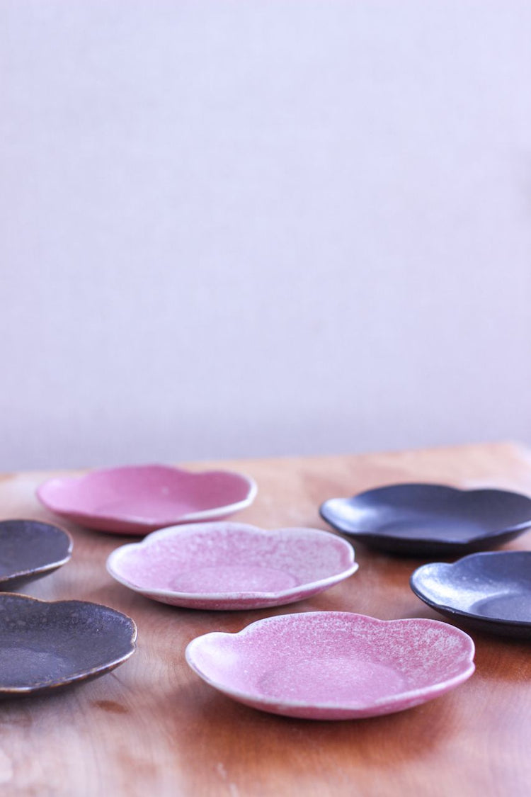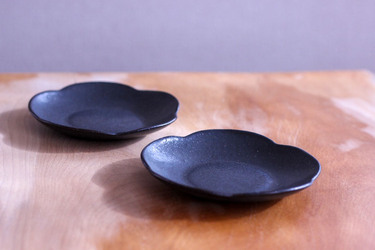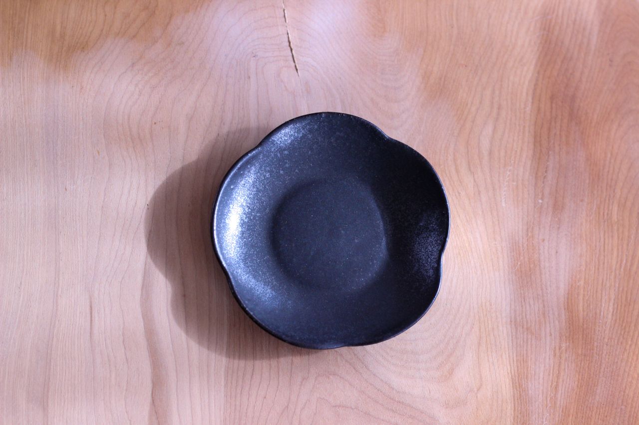 This flower-shaped dish adds a lovely and sophisticated beauty to your dining table. This flower-shaped dish is glazed in sumi-black, a simple yet striking color that blends wonderfully with any dish. Designed with ease of use in mind, it will be a great addition to your everyday dining table as well as for entertaining. Because they are handmade, each piece has its own unique texture and charm. We hope you will enjoy a hearty dining experience with this flower-shaped plate by serving your favorite dishes.