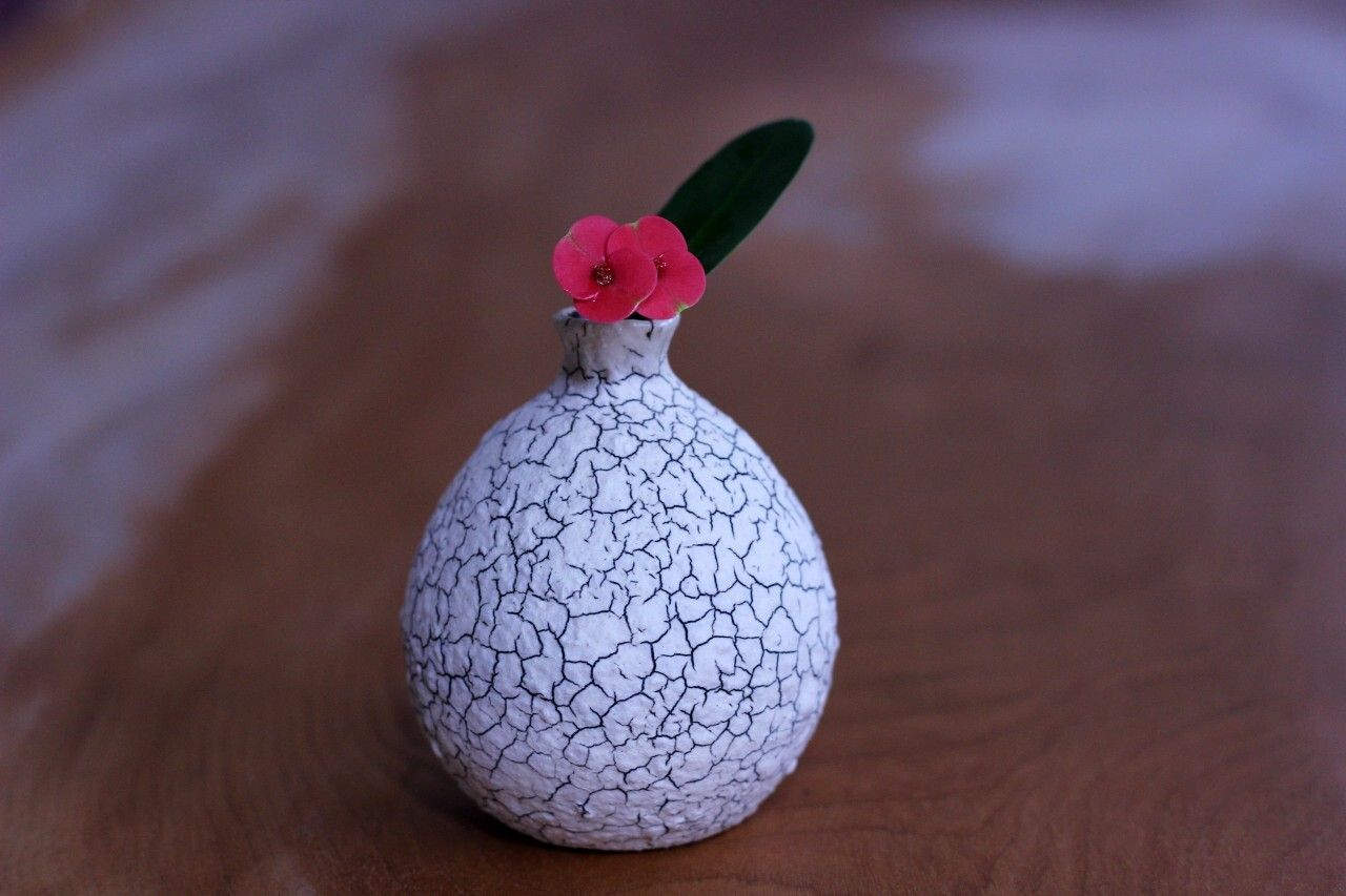This tokkko-shaped vase adds a natural ambience to any room. The cracked pattern on the white background gives it an antique look and makes it a single-flower vase with a strong presence. Its small size makes it easy to place it at the entrance or in the bathroom, etc., and it will make your room more colorful.