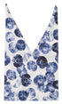 Cute camellia flowers in an indigo-dye-like color scheme are spread over the entire surface.
