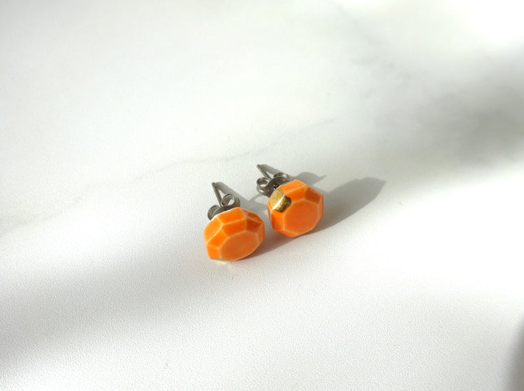kotsubu ceramic pierced earrings (octagonal, orange)