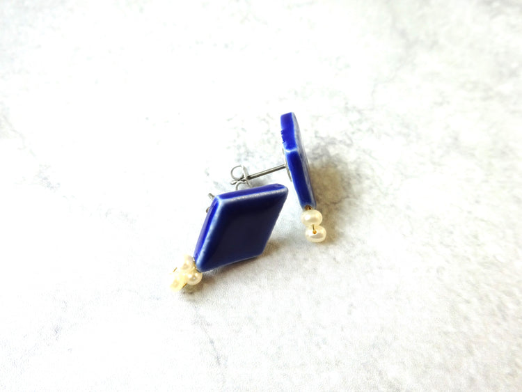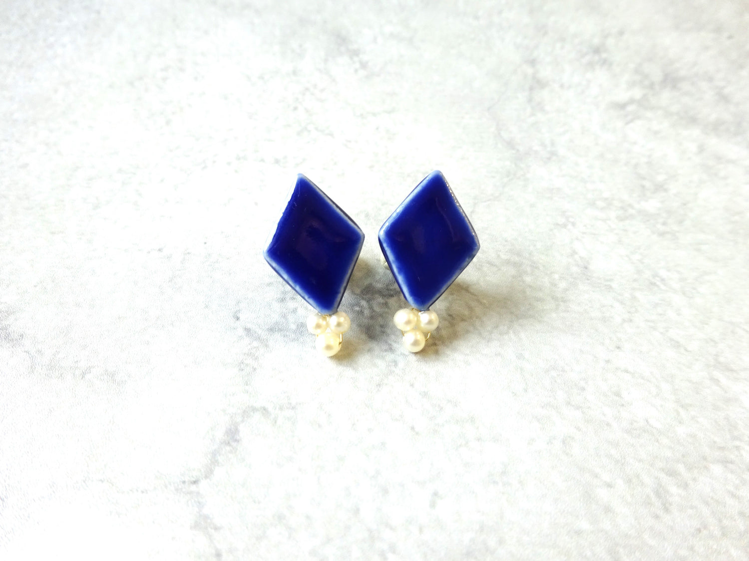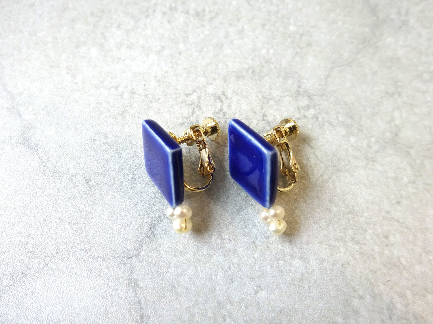 hishigata freshwater pearl pierced earrings/Clip-on earrings (blue)