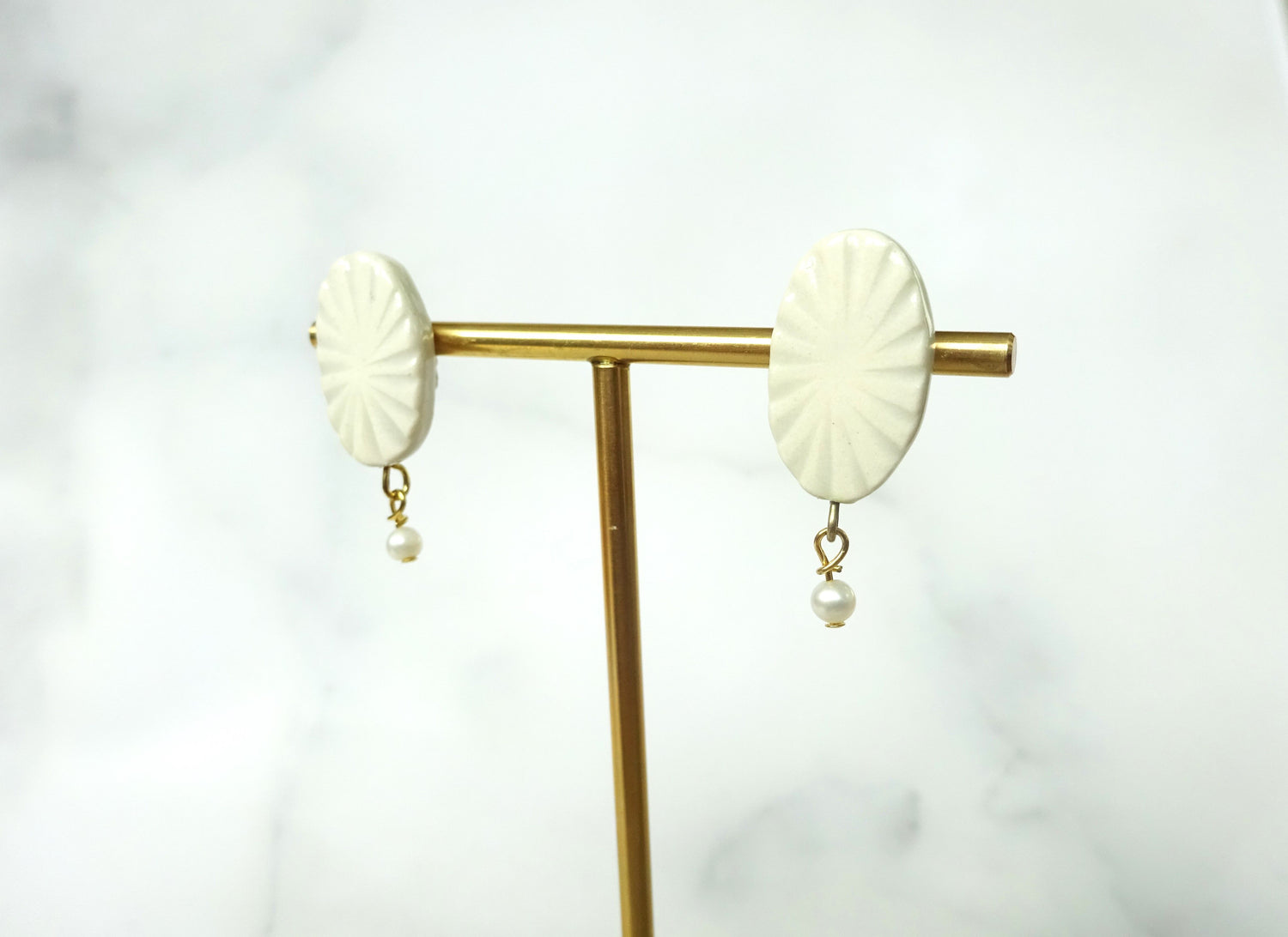 The combination of the texture and color of freshwater pearls and finely cut ceramics is a fun Pierced earrings/Clip-on earrings.