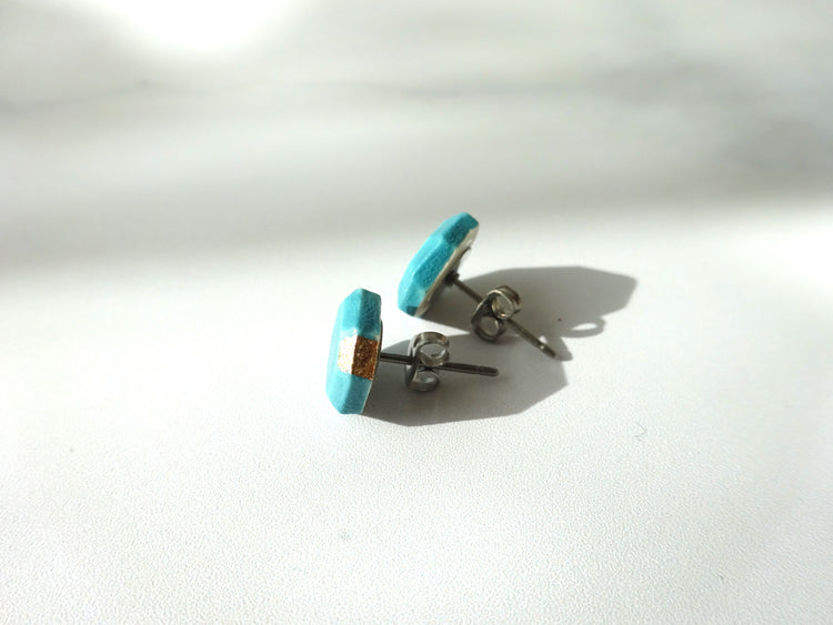 kotsubu ceramic pierced earrings (octagonal, turquoise color)