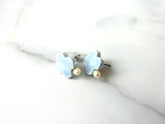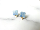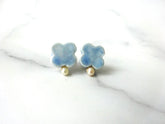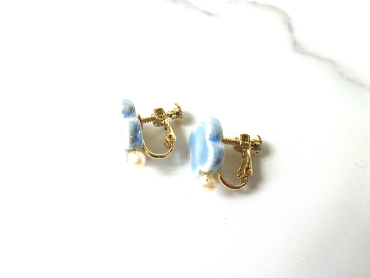 CLOVER and freshwater pearl pierced earrings/Clip-on earrings (light blue)