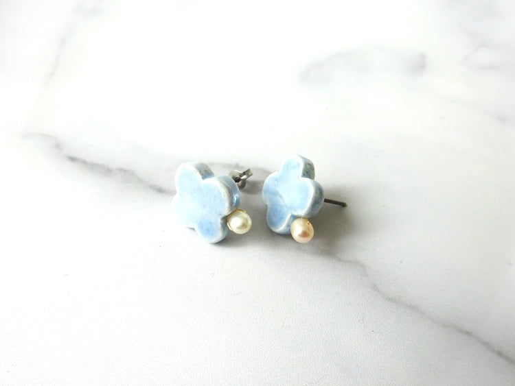 Materials: ceramic, freshwater pearls, titanium pierced earrings or alloy clip-on earrings hardware