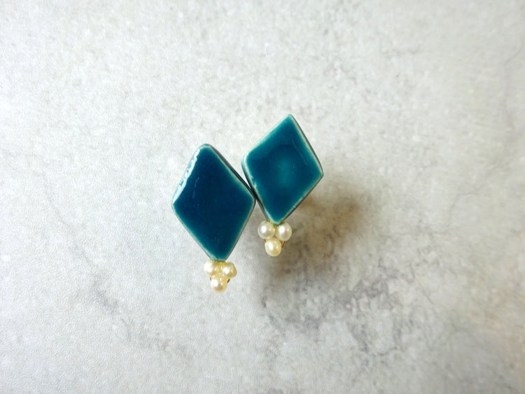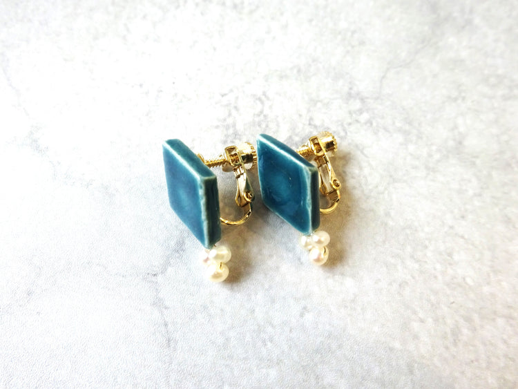 Materials: Ceramic, freshwater pearls, titanium pierced earrings hardware / alloy clip-on earrings hardware