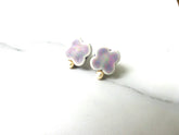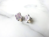 CLOVER and freshwater pearl pierced earrings/Clip-on earrings (lavender)