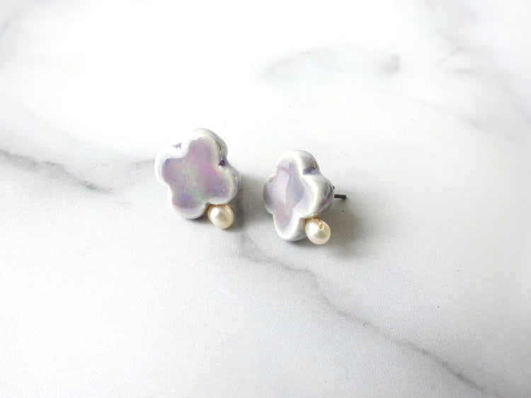 Materials: ceramic, freshwater pearls, titanium pierced earrings or alloy clip-on earrings hardware