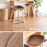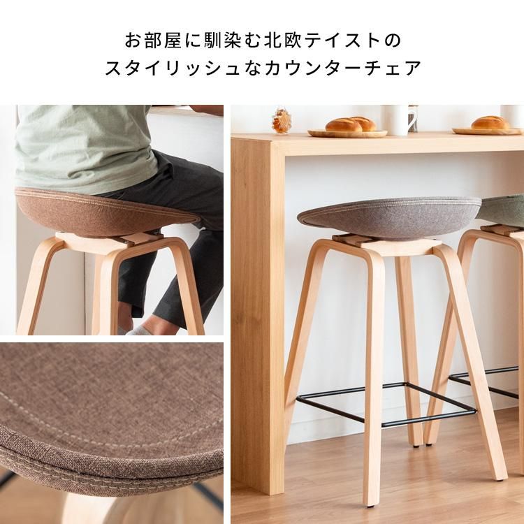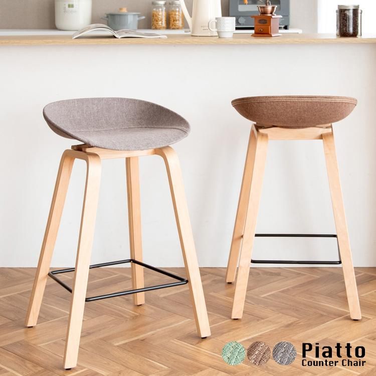The Scandinavian style counter chair [Piatto] has a warm fabric seat and natural wood legs with beautiful wood grain.