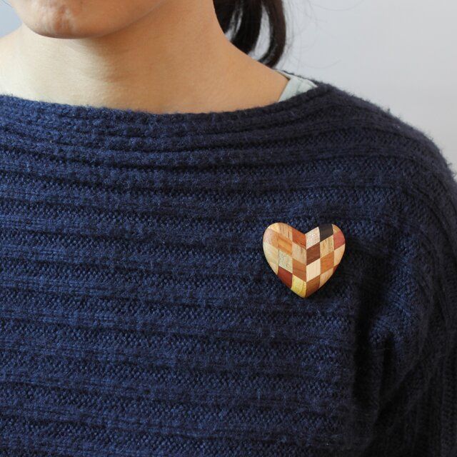Marquetry heart brooch