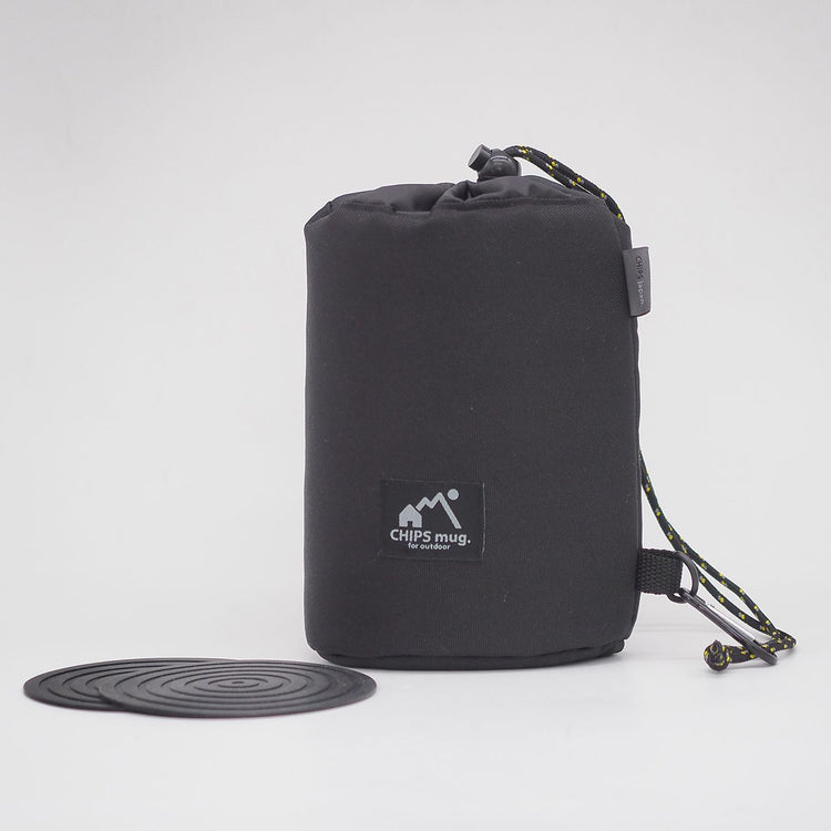 This pouch holds two chip stacks. The resilient material protects what's inside, making it perfect for carrying your ceramic mugs. A strong ally for those who want to use their favorite mugs both outside and inside! The silicone coaster can be used not only as a coaster, but also as a lid to keep insects away when outdoors. When stored, use it as a buffer to prevent two mugs from colliding with each other. Chips Stack Pouch (with 2 silicone coasters) *Stacked mugs are sold separately.