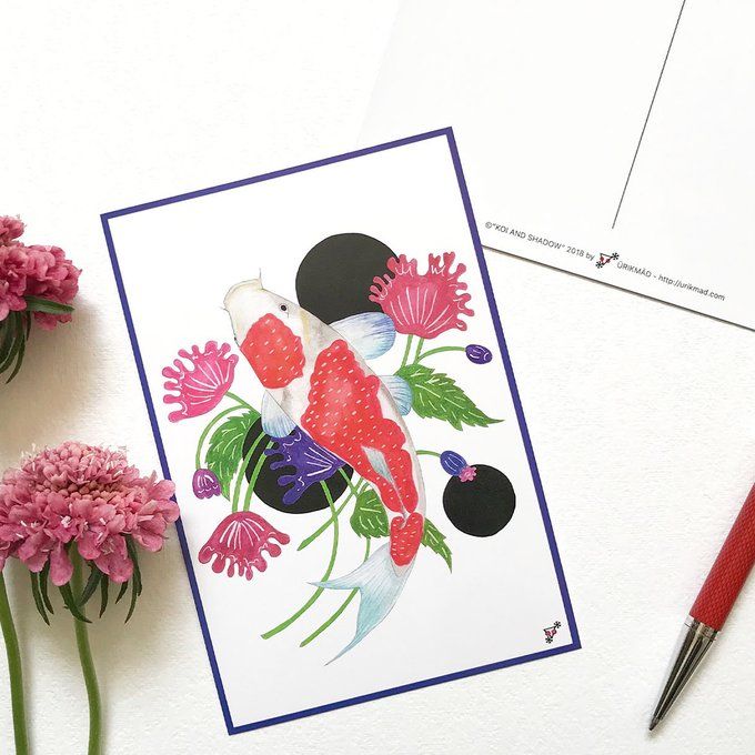 I painted "Koi and Shadow," the third in the Japan Postcard Series!