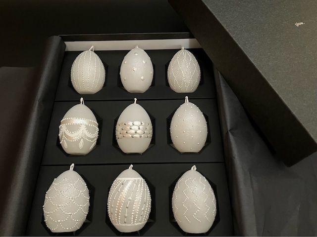 All candles are handmade, one by one, by hand. After the egg candle is made, a pattern is drawn on the surface.