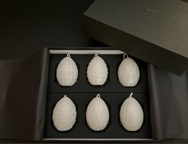 All candles are handmade, one by one, by hand. After the egg candle is made, a pattern is drawn on the surface.