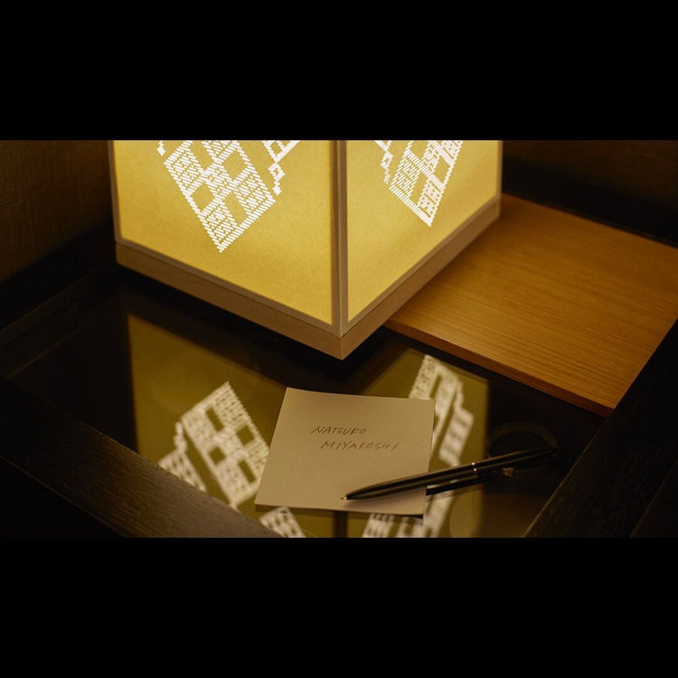 • The shade is made of warm high-quality paper, and the wooden frame is crafted from Aomori hiba. The wooden frame is assembled, and the pattern is hand-cut.