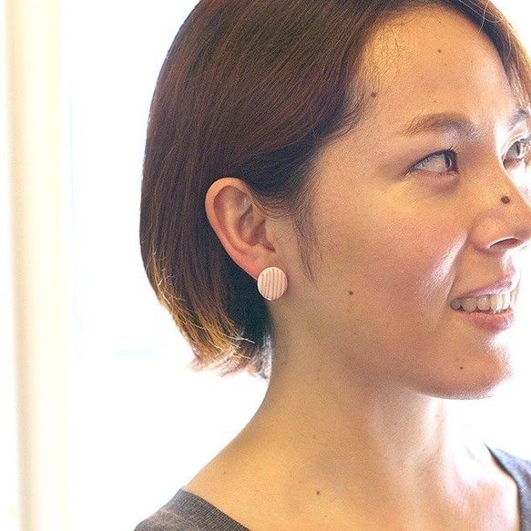 Pierced earrings with cute hand-painted lines, suitable for both Japanese and Western styles.