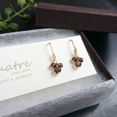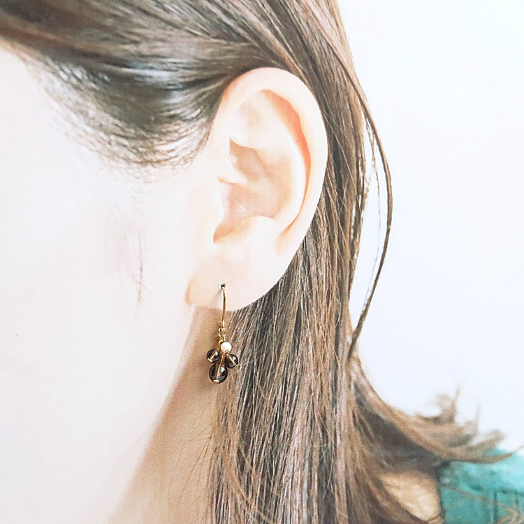 Three smoky quartz grains and one small mother-of-pearl are placed at the points.