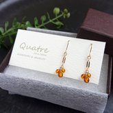 The elegant gold-filled parts are adorned with three ambers.