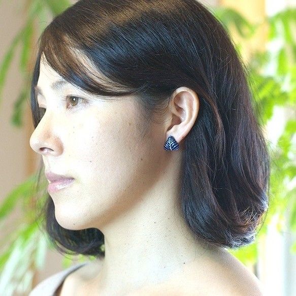 Pierced earrings with a beautiful lapis lazuli color and triangular shape.