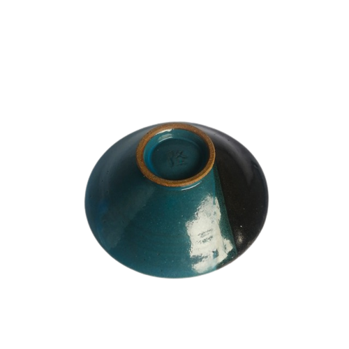 Divided sake cup with tenmoku glaze and turquoise blue glaze
