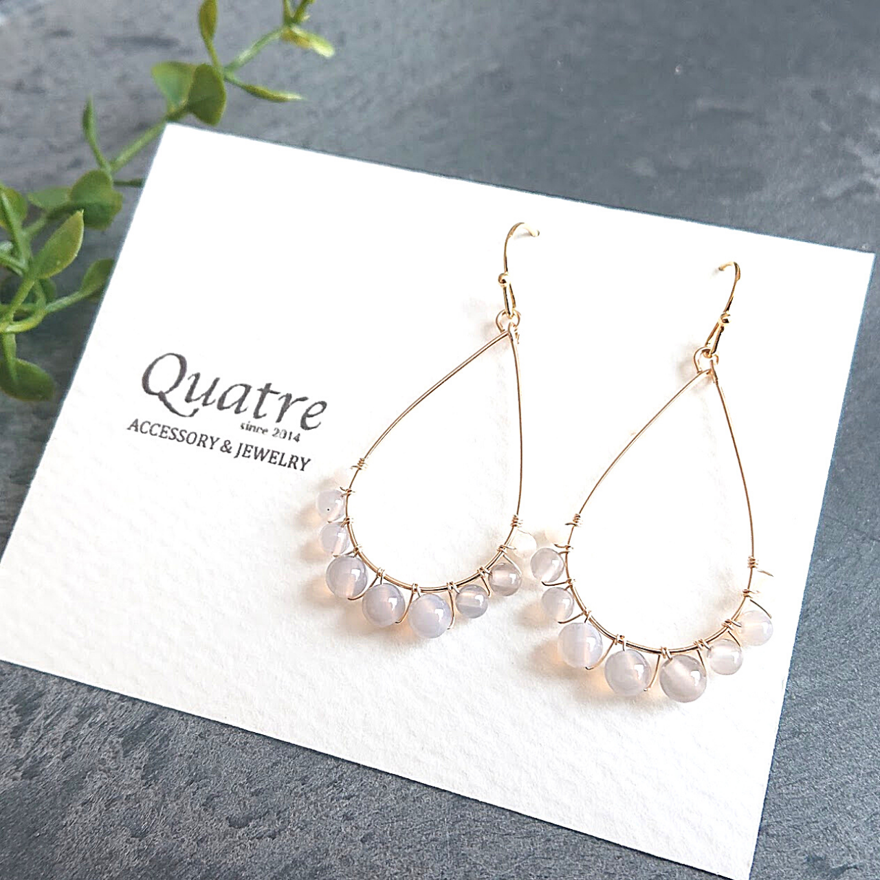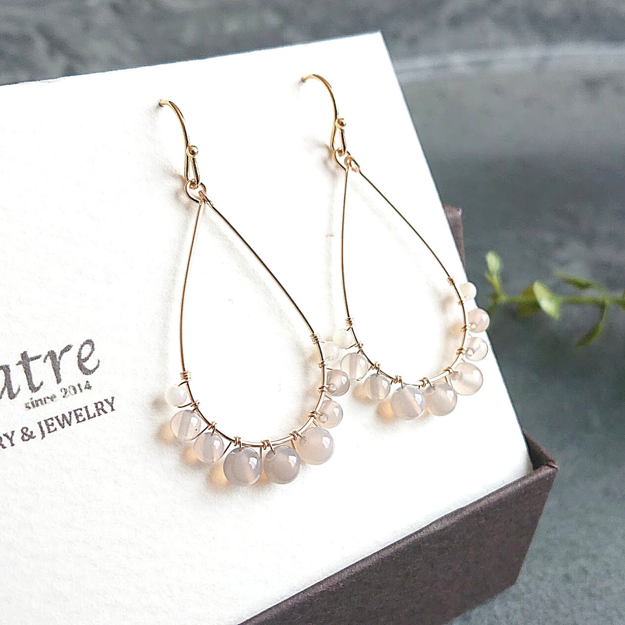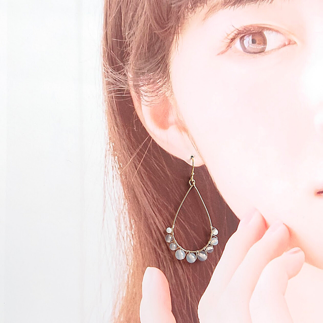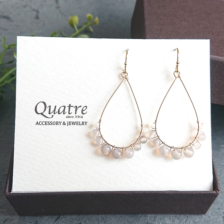 This popular design features natural stones wrapped around a drop hoop with a strong presence.