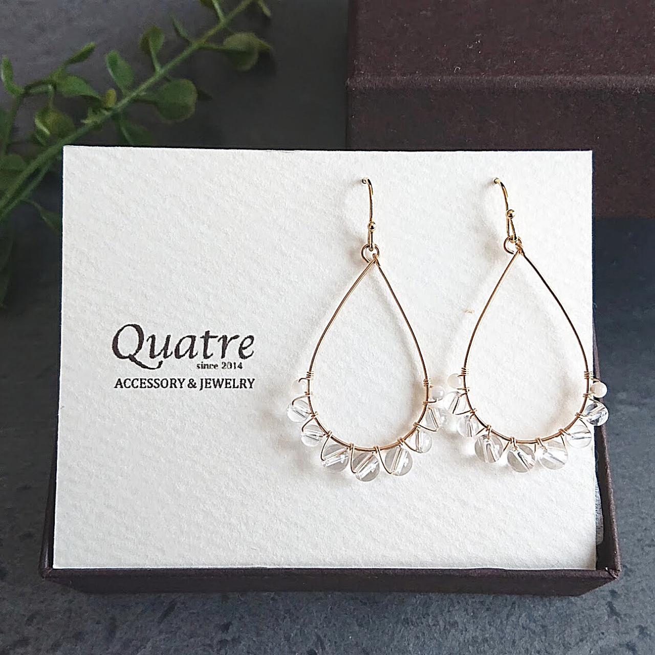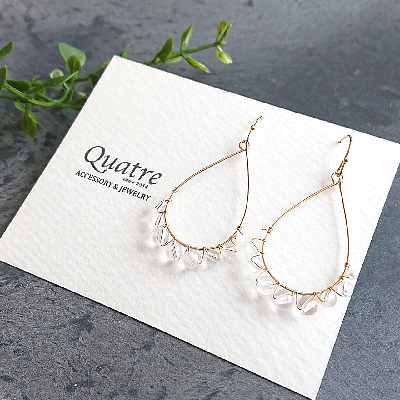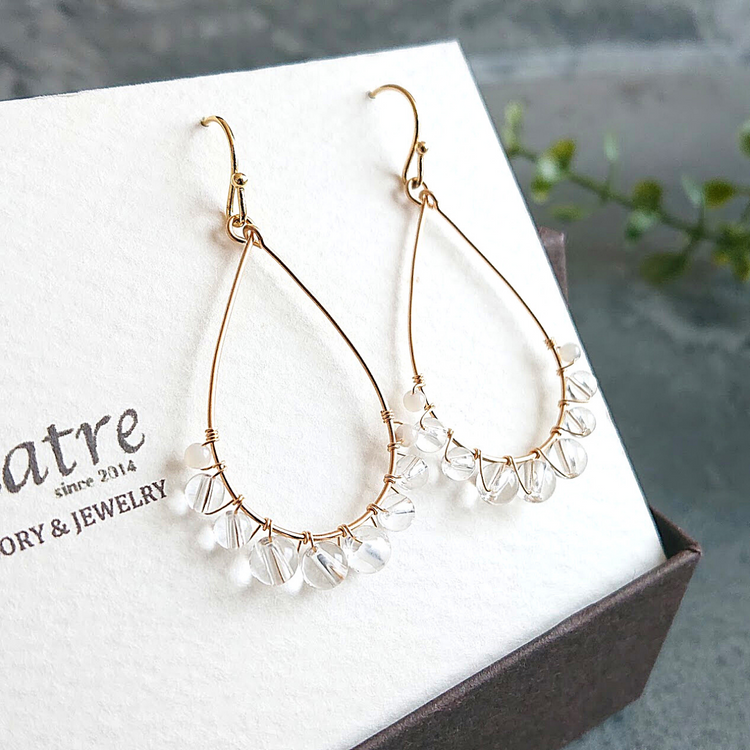 This popular design features natural stones wrapped around a drop hoop with a strong presence.