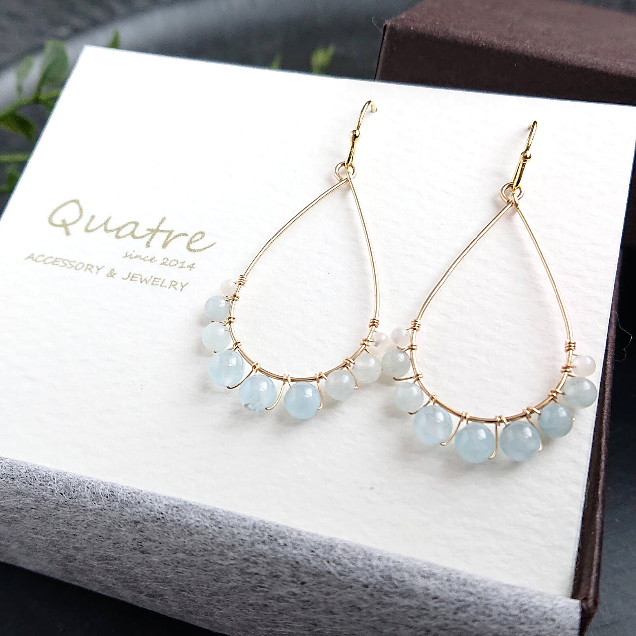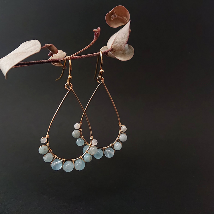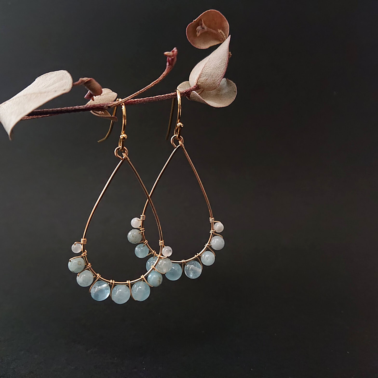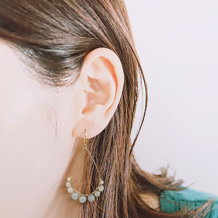 This popular design features natural stones wrapped around a drop hoop with a strong presence.