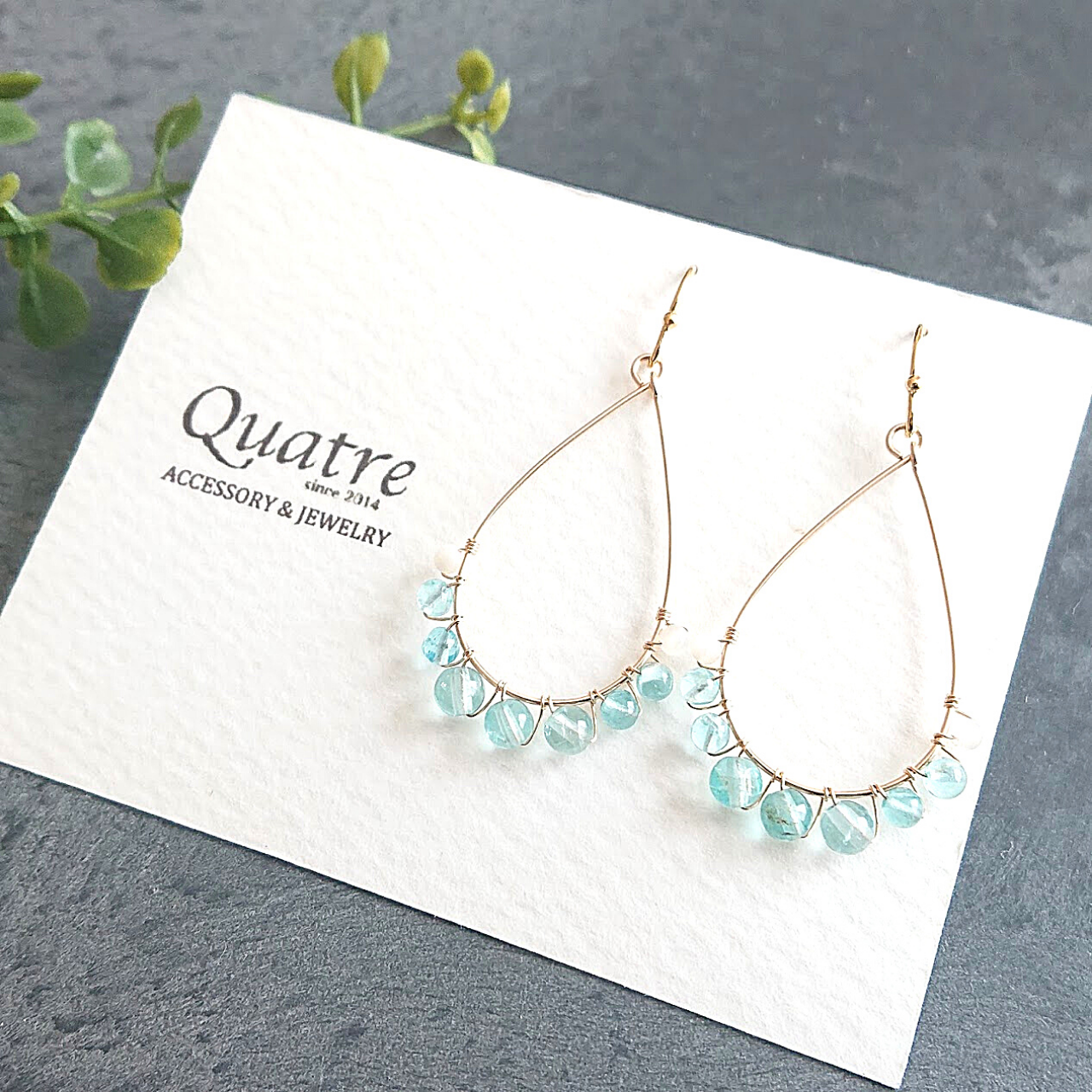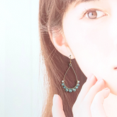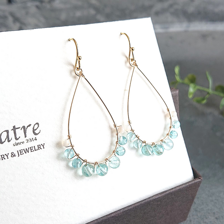 This popular design features natural stones wrapped around a drop hoop with a strong presence.