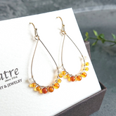 This popular design features natural stones wrapped around a drop hoop with a strong presence.