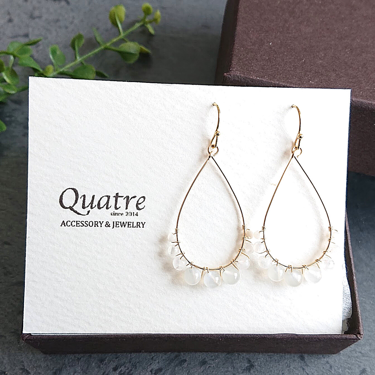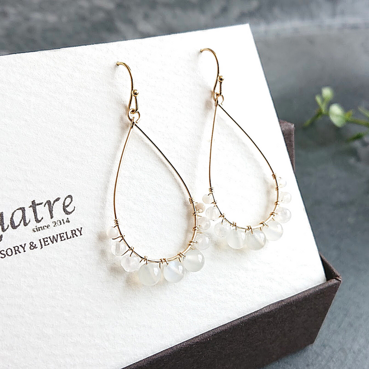 This popular design features natural stones wrapped around a drop hoop with a strong presence.
