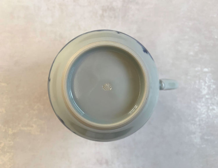 Naturally, since the edge of the handle will be hardened, after firing, we add brown or no color to the edge of the handle by overglaze painting.