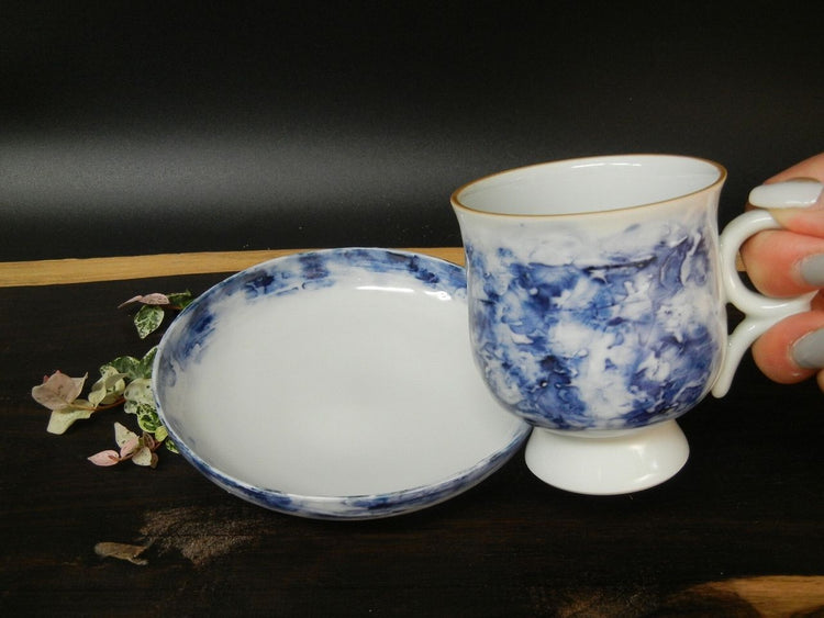 The material is porcelain, and both cups and saucers are handmade one by one by rokuro molding.
