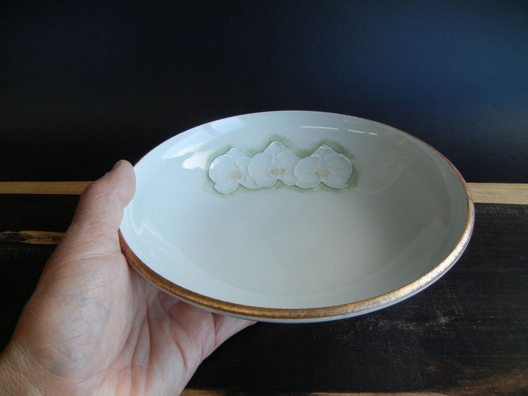 Phalaenopsis orchid flat bowl in gold