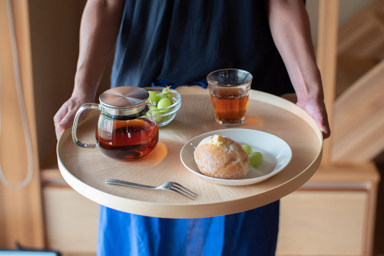 This tray is larger than normal trays, but lightweight. It can be used in various ways, such as on the floor or sofa, as well as for carrying things.