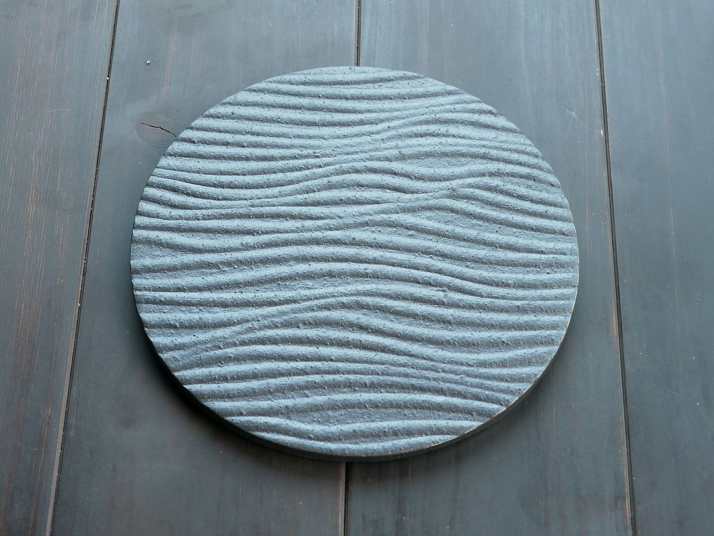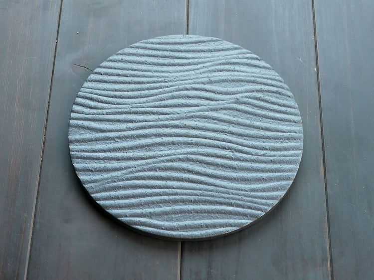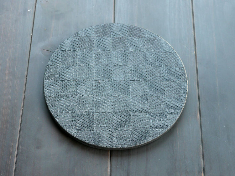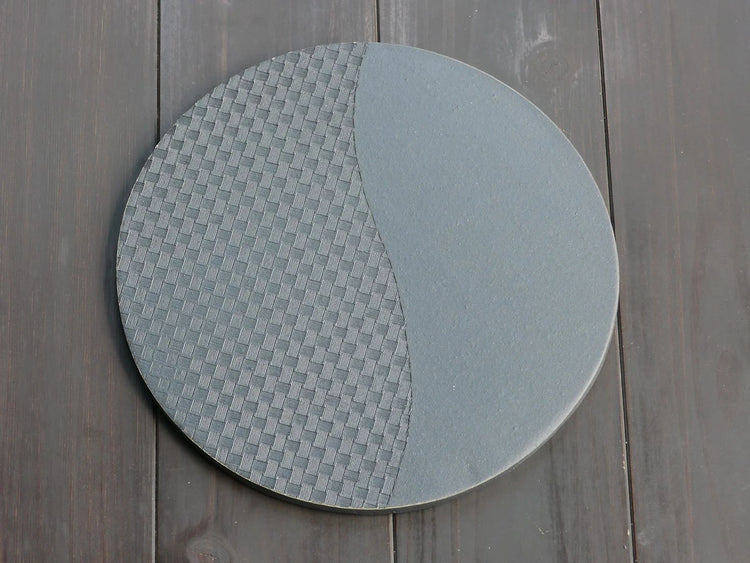 This circular dish is made by applying a roof tile manufacturing process.