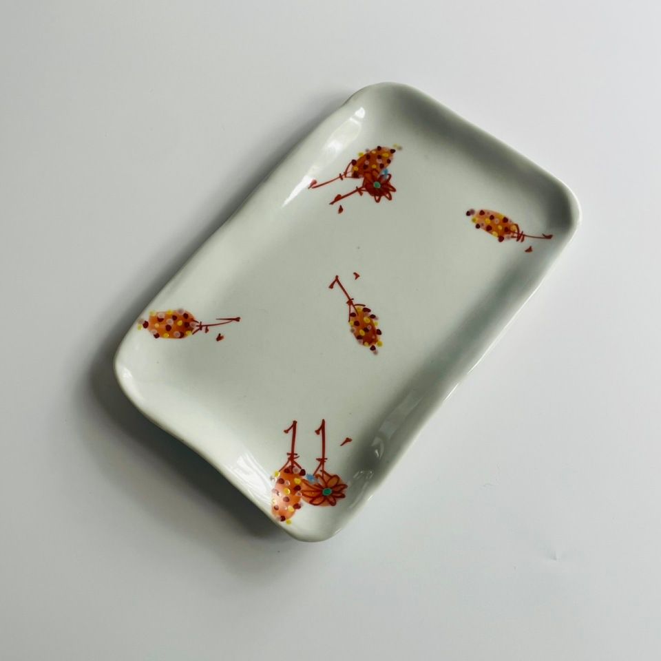 [Tada Tetsuo] Rectangular dish with a floral motif