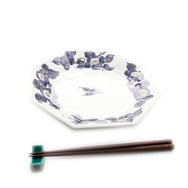 [Eisyou] Eight-sided Octagonal Dish with Camellia Design