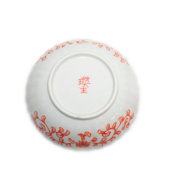This small bowl is suitable for daily use by anyone. Various colored patterns are finely hand-painted along the chrysanthemum shape, and chrysanthemum arabesques are also painted on the outside.