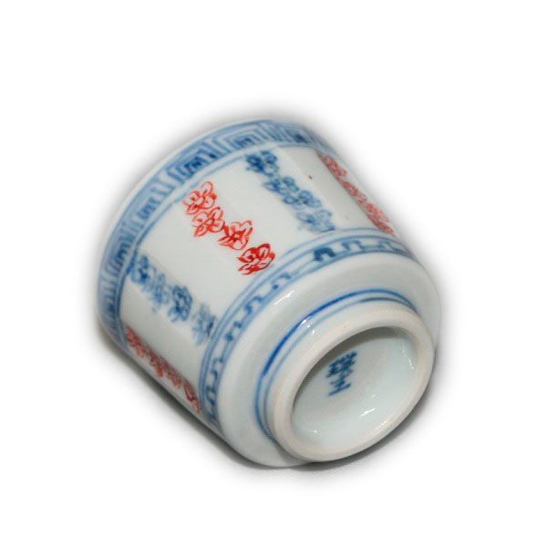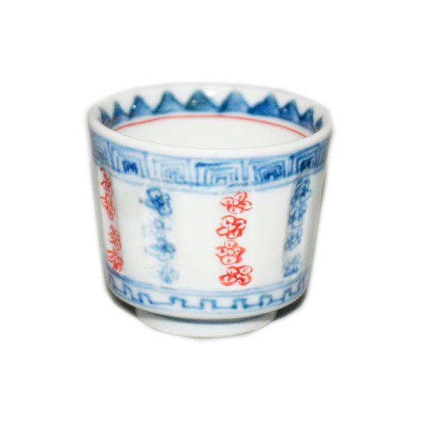 The sides of this sake cup are shinogi, painted in underglaze blue and red. It is a simple sake cup with a sense of presence.