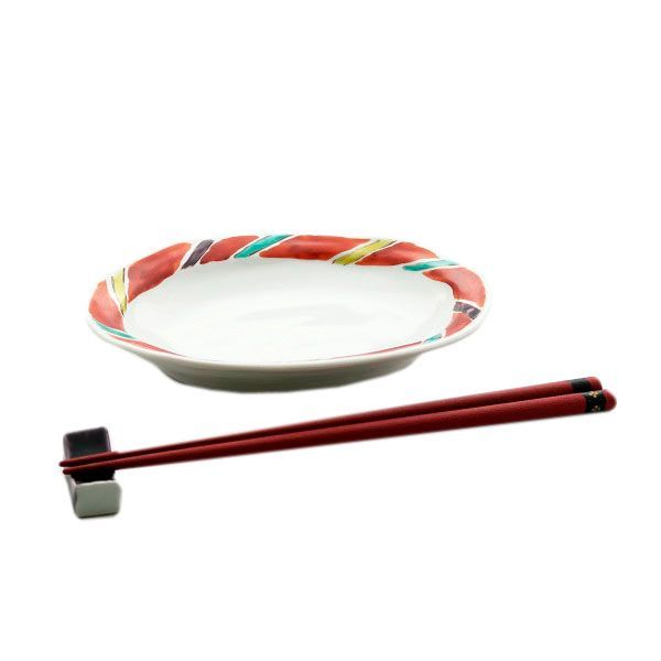 Mamichi is a striped fabric from China that was prized as a specialty cloth, and also means a narrow path such as a side road. The softly shaped oval dish is easy to use and well received. The Kutani's unique colorful "ma-michi" design (striped pattern) is painted on the surface of the plate. The dishes served on the plate will look beautiful.