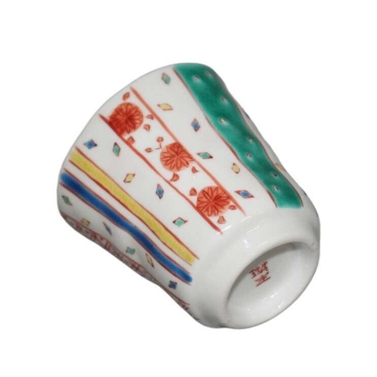 This is a teacup in the popular series of tekkishi-shaped teacups made by Kutani Bitoen. Various colored patterns are painted by hand in detail.