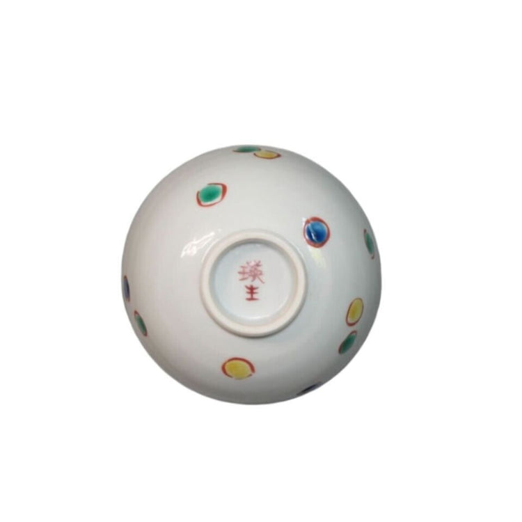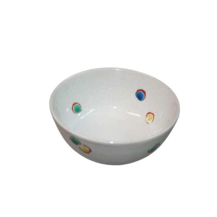This is a rice bowl for children. It is decorated with a polka dot design popular at Kutani Bitoen. It is a good size for adult women to use as a small rice bowl.