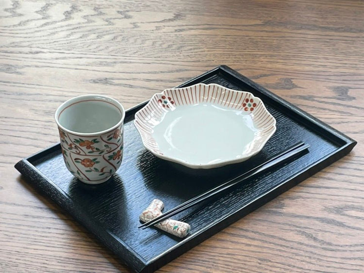 [Eisyou] Plum design on stripes, 5"-ringed plate