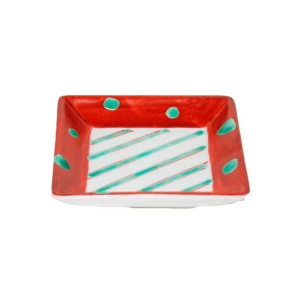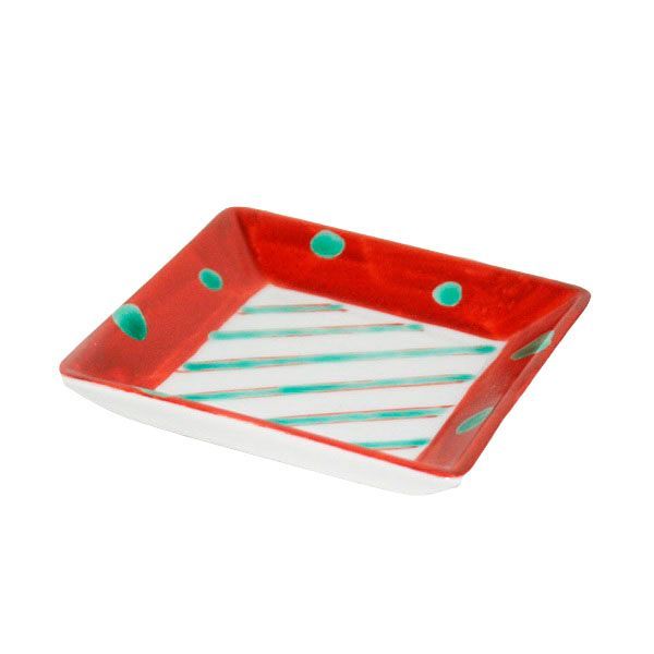 [Eisyou] Three-sided rectangular dish, polka dot design in red glaze