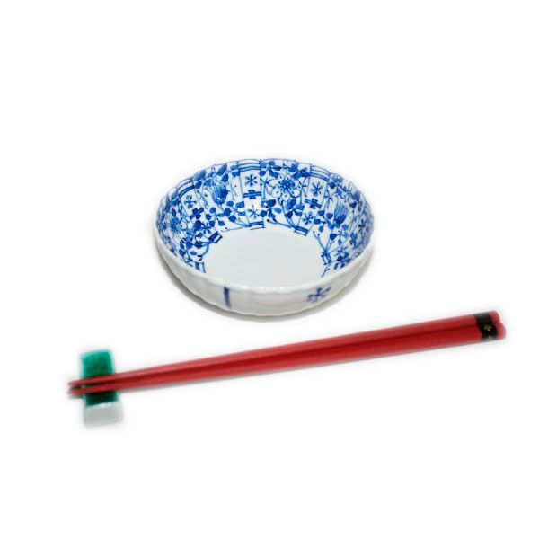 This is a small bowl in a shape that anyone can use every day. A floral design is hand-painted in extremely fine detail along the chrysanthemum shape, and a simple kosotsuke pattern is also painted on the outside.